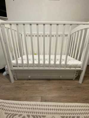 Продам детскую кровать для новорожденных с маятником размер 60*120, выдвижным ящиком и матрасом ( без пятен ) .