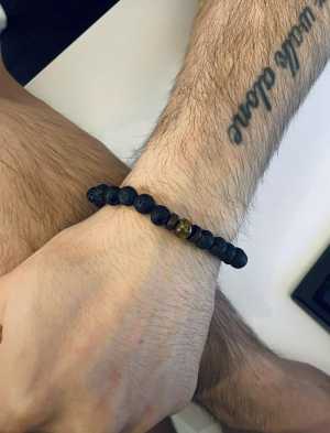 Мужской браслет ручной работы, качественный и стильный. Выполнен из гематита и вулканического камня.