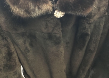 Шуба в идеальном состоянии. Носилась пару раз. Длинный рукав, на рукаве украшение. На шее блестящая пуговица