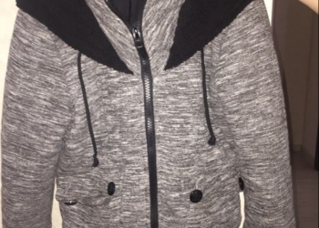 Светло-серая, очень симпатичная куртка на весну/осень . 50 размер. Капюшон отстегивается. Стирается в машинке.