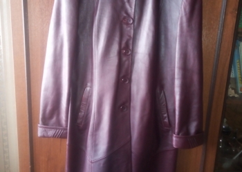 Продам кожаный женский плащ б /у..в хорошем состоянии..длина 103 см.. тёмно-бордового цвета..торг уместен..