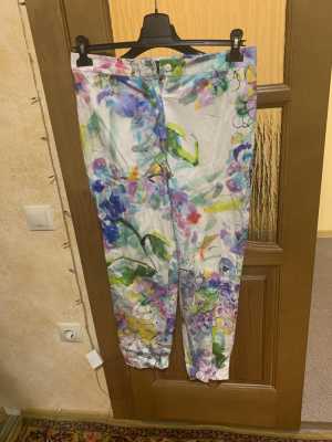 Летние, лёгкие брюки. Б/у мало на худенькую девушку размера 40.сзади есть резинка. Без карманов. Самовывоз