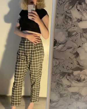 Брюки в идеальном состоянии. Надевались один раз, все остальное время висели в шкафу. Размер указан M, но по факту лучше S.