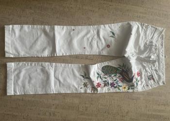НОВЫЕ джинсы кипельно былого цвета, с ручной вышивкой на девочку/девушку 164 размера.