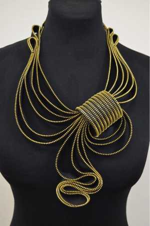 Ожерелье "Золотой бант". Украшение выполнено из молний. Оригинальное украшение подойдет к вечернему наряду.