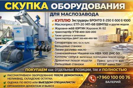 Скупка оборудования для маслоцеха! 📞 Мы покупаем любое оборудование для маслоцеха.