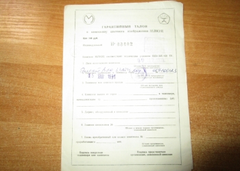 Гарантийный талон к кинескопу 32ЛК2Ц