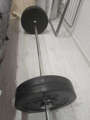 Гриф олимпийский (хранился в гараже, местами поверхностные следы ржавчины), с блинами 4 * 10 кг, 2 * 5 кг.