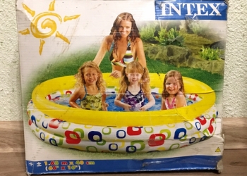 Бассейн фирмы «INTEX» Диаметр 168 см Высота 40 см Бассейн б/у, целый. Выполнен из прочного яркого материала.