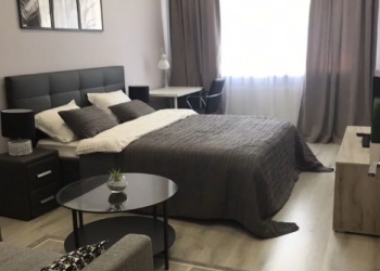 Уютная квартира-студия с современной мебелью: двуспальная кровать,холодильник, ЖК-телевизор, Wi-Fi, электрический чайник...