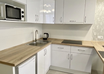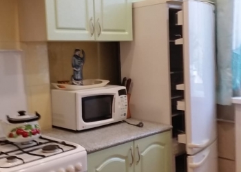 Сдаю двухкомнатную квартиру. На кухне новая мебель, холодильник, микроволновая печь, чайник, стол.