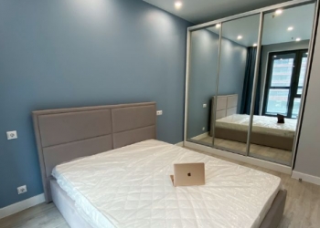 В Аренду предлагается апартаменты с отдельной гардеробной. В спальне имеется большая кровать и трехсекционный шкаф.