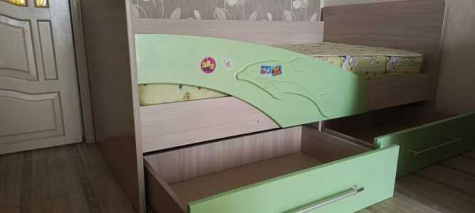 Продам кровать 160*80 с матрасом, есть 2 выдвижных ящика для хранения постельных принадлежностей.