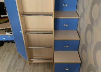 продаю стенку б/у из 4х секций цвета орех, один стеклянный шкаф с зеркалами и с тремя выдвижными ящиками в низу; второй...