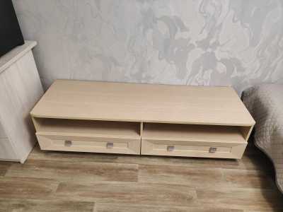 Продается бежевая напольная тумба под телевизор в хорошем состоянии.