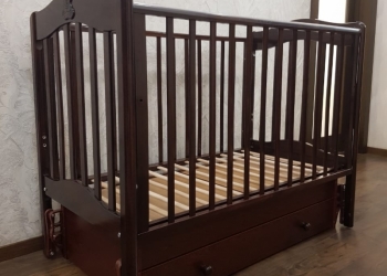 Кроватка - маятник, выполнена в классическом стиле, коричневого цвета.