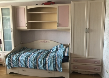 Детская комната состоящая из 1)кровать 2)кровать - диван 3)2 тумбочки 4)2 шкафа для одежды 5)шкаф для книг 6)рабочий...