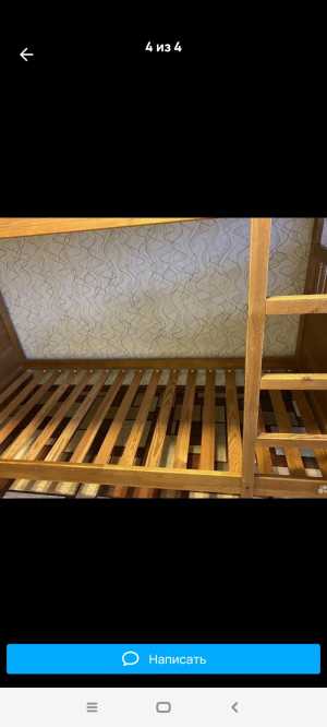 Кровать деревянная, двухуровневая в хорошем состоянии. Размеры длина 200 см, ширина - 90 см. Высота 280.