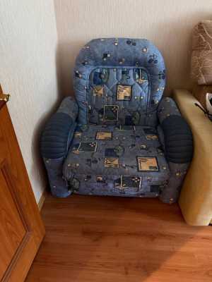Продам б/у кресло кровать в хорошем состоянии, чехлы сьемные, ткань плотная износостойкая, цвет голубой с рисунком