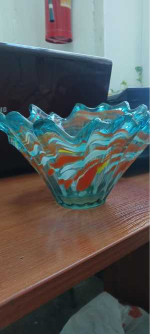 Эта уникальная ваза из цветного стекла станет ярким акцентом в любом интерьере.