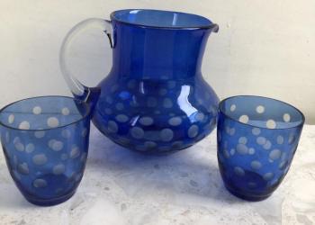Набор для сока, компота Красный Май Кобальтовое стекло Рисунок матированный горошек Кувшин 2 литра, стакан 250 мл...