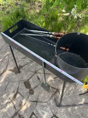 Мангал из 3мм стали, ножки откручивающиеся, борта цельногнутые, учаг под казан, на 10 шампуров, 900:300:820,