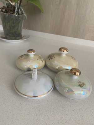 Крышки от Мадонны. 1. Крышка от сахарницы. Желтый перламутр. Нижний диаметр 8 см, верхний -9,5 см 2.
