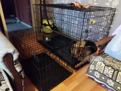 Квартирный или в дом вольер с откидной дверцей и полкой, размер два на метр с чем-то.